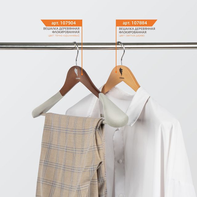 Предназначена для удобного хранения одежды. Перекладина пригодится для хранения брюк. Флокированная вешалка надежно сохранит одежду, предотвращая соскальзывание за счет покрытия.