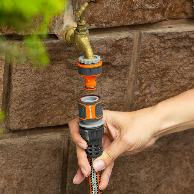 Изготовлен из ударопрочного ABS пластика для долгого срока службы. Прорезиненные поверхности и эргономичная форма для удобной эксплуатации. Надежный 3х-лепестковый замок и жесткая металлическая пружина обеспечивают плотную фиксацию штуцера, что исключает протекание воды в соединении. Совместим с базовой системой полива DAEWOO и других производителей. Удлинённый хвостовик препятствует заломам и повреждению шланга в месте крепления. Фиксаторы шланга выполнены из эластичного полипропилена и гарантируют крепкое соединение даже при высоком давлении.