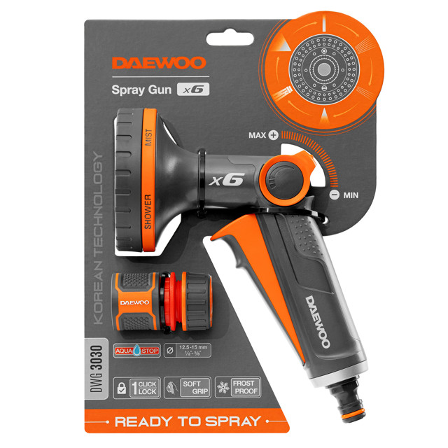 Фиксация курка одним нажатием. Плавная регулировка потока воды. 6 типов струи позволяют выбрать оптимальный режим для очистки любых поверхностей и бережного полива. Силиконовые форсунки легко очищаются от известковых отложений. Прорезиненная рукоятка эргономичной формы. Фильтр грубой очистки с возможностью промывки. Коннектор с аквастопом в комплекте для быстрого начала работы.