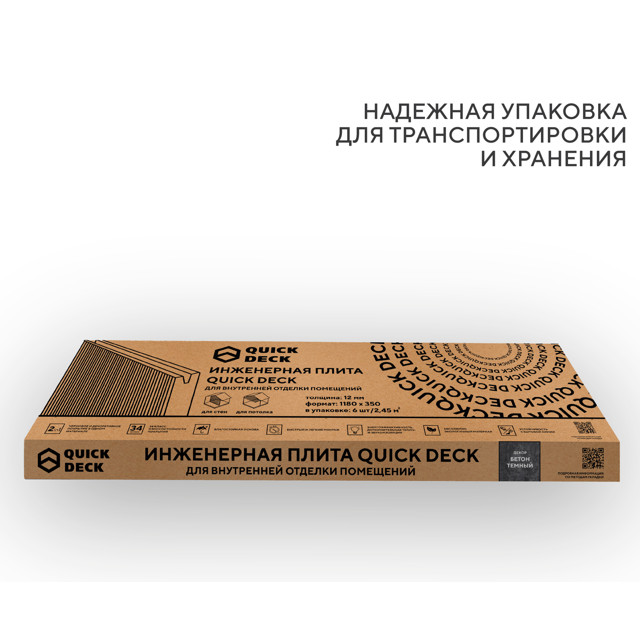 Влагостойкие шпунтованные строительные плиты с износостойким декоративным покрытием 34 класса истираемости. Для осуществления черновой и декоративной отделки одним материалом. Упаковка с плитами представляет собой 6 плит номинального размера 12 х 350 х 1180 мм в крафтовой коробке (2,478 м2). Удобство транспортировки за счет мобильного формата упаковки. Удобство монтажа за счет мини габаритов и небольшого веса плит.