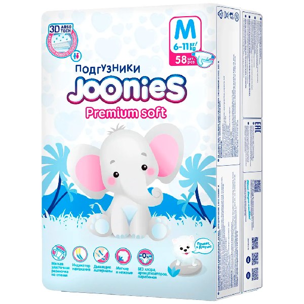 Joonies подгузники Premium Soft 6-11 кг (58 шт) – более 3 предложений интернет-магазинов Санкт-Петербурга, покупайте по самым выгодным ценам! Отзывы, характеристики, стоимость доставки и постоянные скидки на подгузники.