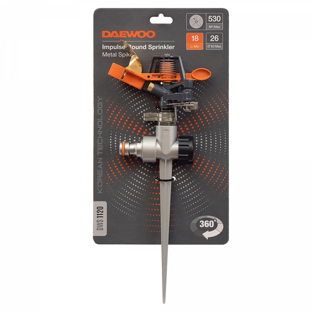 Регулятор вращения позволяет настроить сектор орошения. Регулировка дальности полива. Равномерное орошение без образования луж. Длинный колышек надежно фиксирует инструмент во время работы. Все элементы изготовлены из ударопрочного пластика и металла для долгого срока службы. Фильтр грубой очистки с возможностью промывки. Подходит для участка размером от 500 м2. Возможность последовательного соединения для создания системы полива. Совместим с базовой системой полива DAEWOO и других производителей.