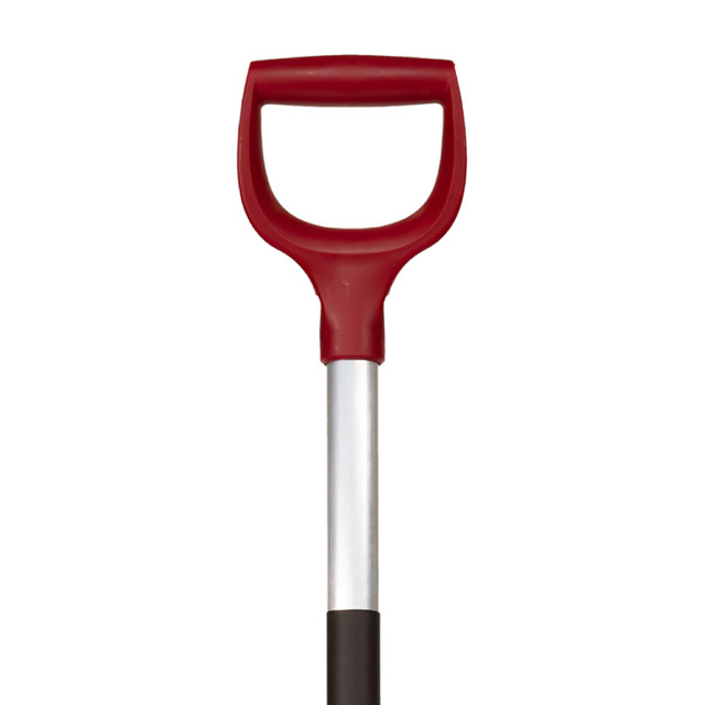 Черенок изготовлен из алюминия, что обеспечивает его лёгкий вес и защиту от коррозии. Подходит к лопатам и другому садовому инвентарю с круглым посадочным отверстием диаметром 32 мм. Поставляется с эргономичной D-образной ручкой бордовогоо цвета, выполненной из первичного пластика и усиленной ребрами жёсткости. Благодаря зоне термоусадки черенок не пачкает руки, не скользит и остается комфортным даже при отрицательных температурах.